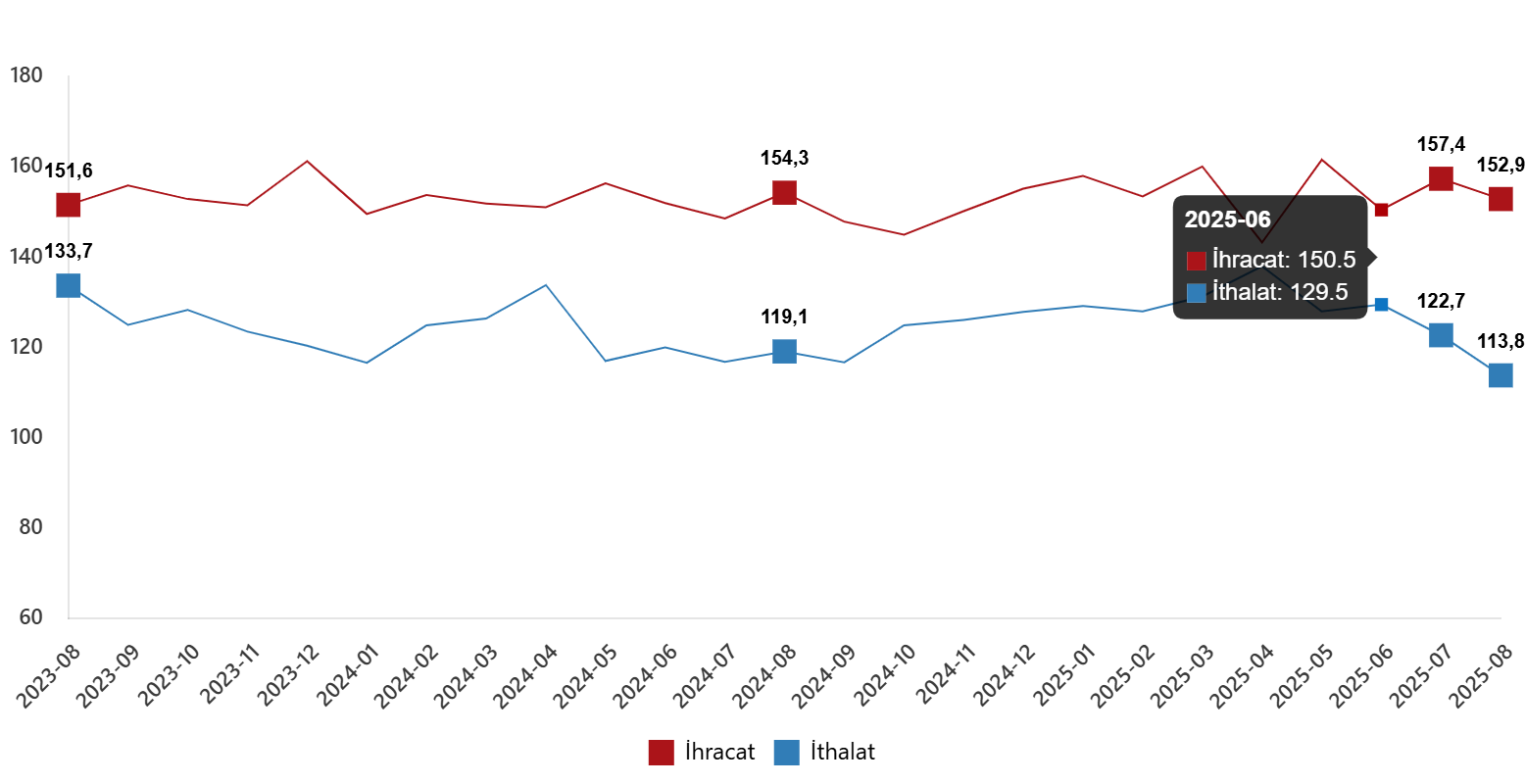 Dış ticaret hadleri, Ağustos 2025
