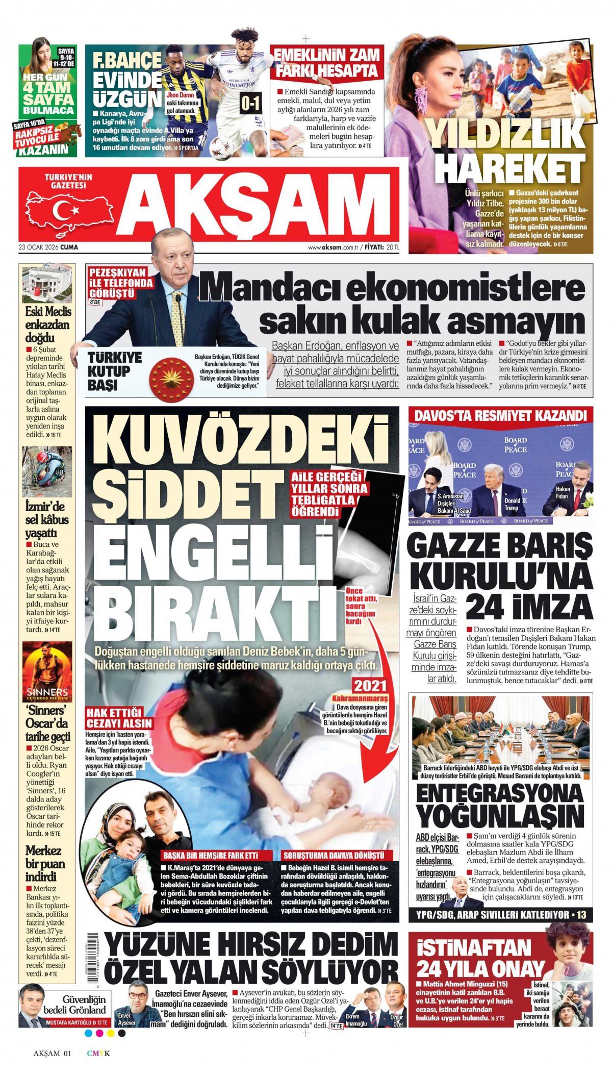 Akşam Gazetesi 24 Ocak 2026 Günü Manşeti