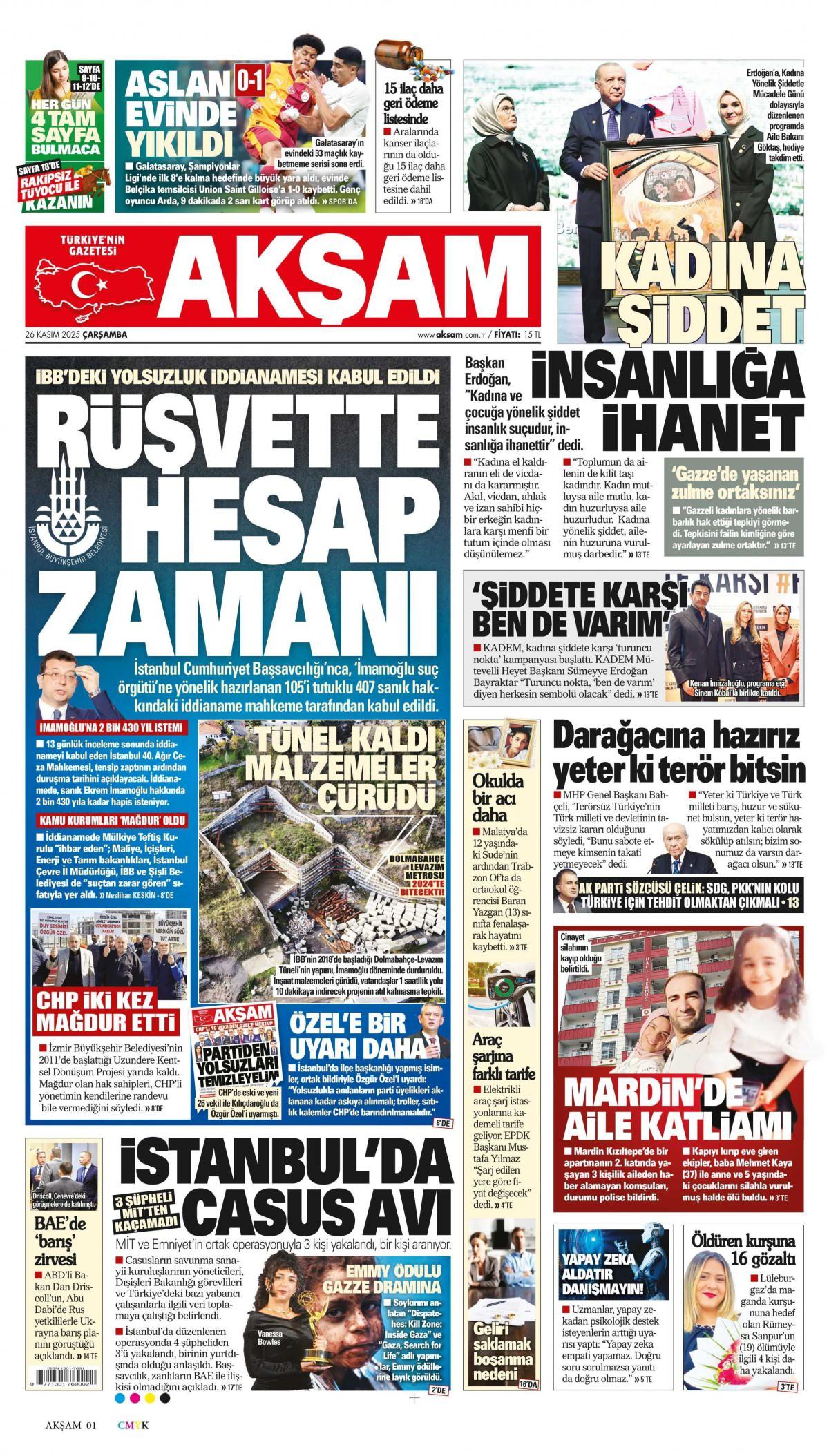 Akşam Gazetesi 27 Kasım 2025 Günü Manşeti
