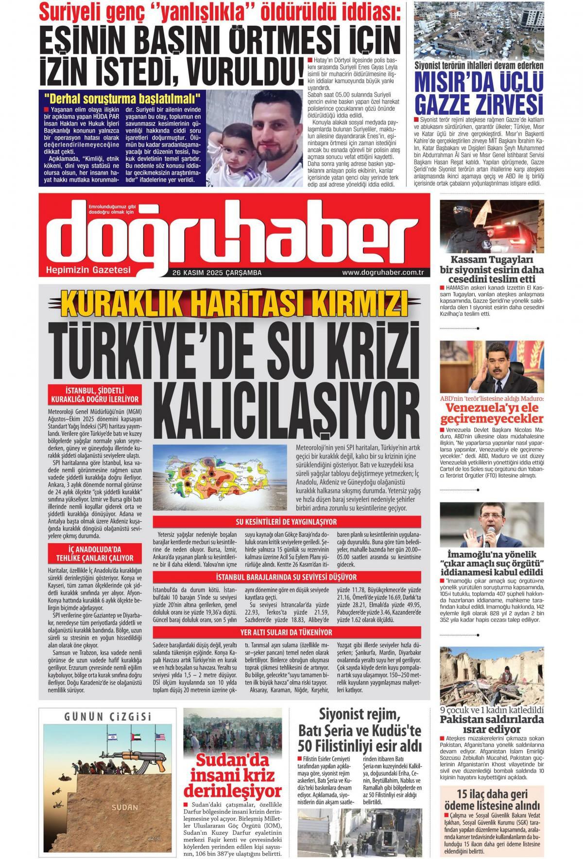 Doğru Haber Gazetesi 27 Kasım 2025 Günü Manşeti
