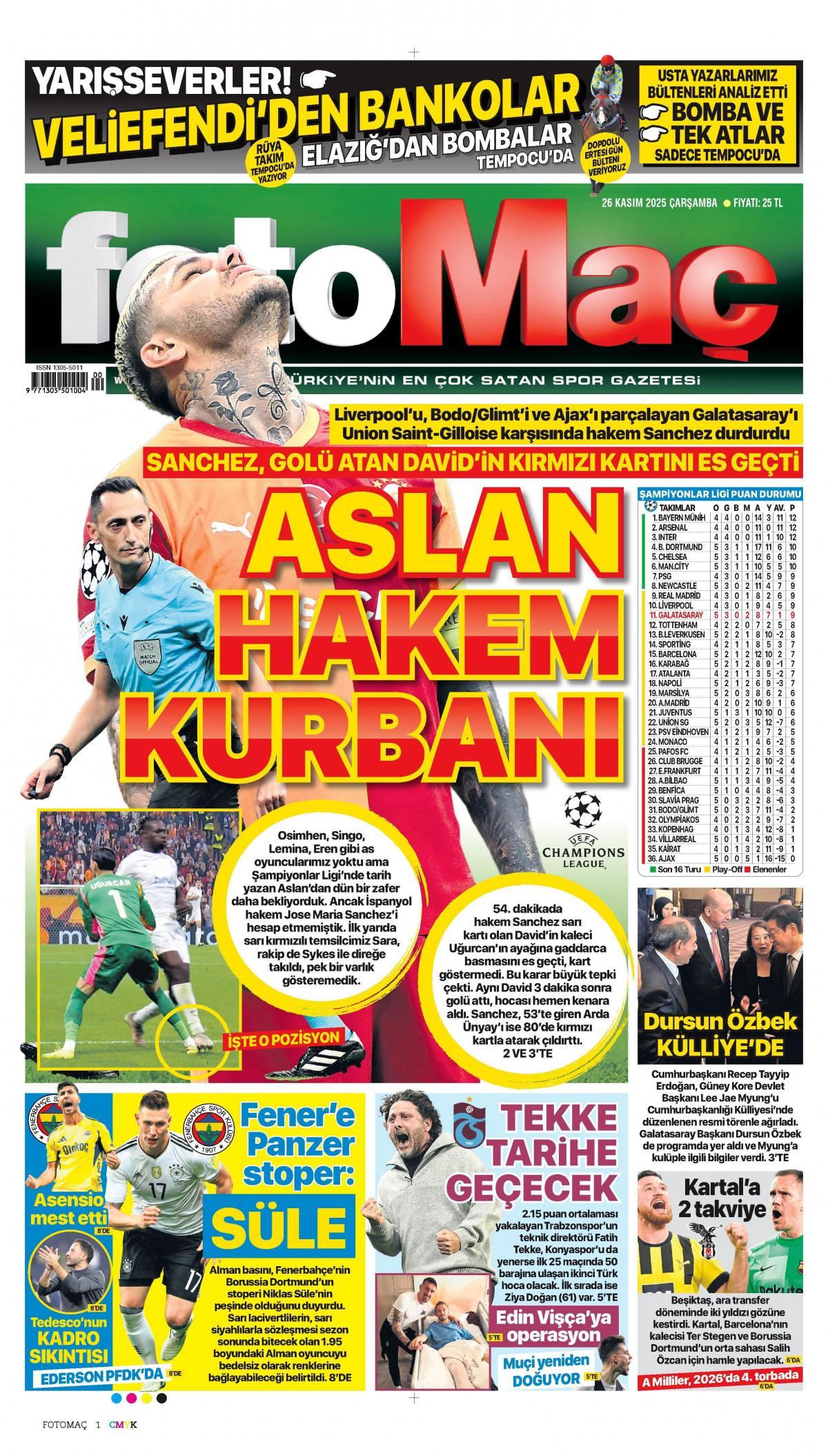 Fotomaç Gazetesi 27 Kasım 2025 Günü Manşeti