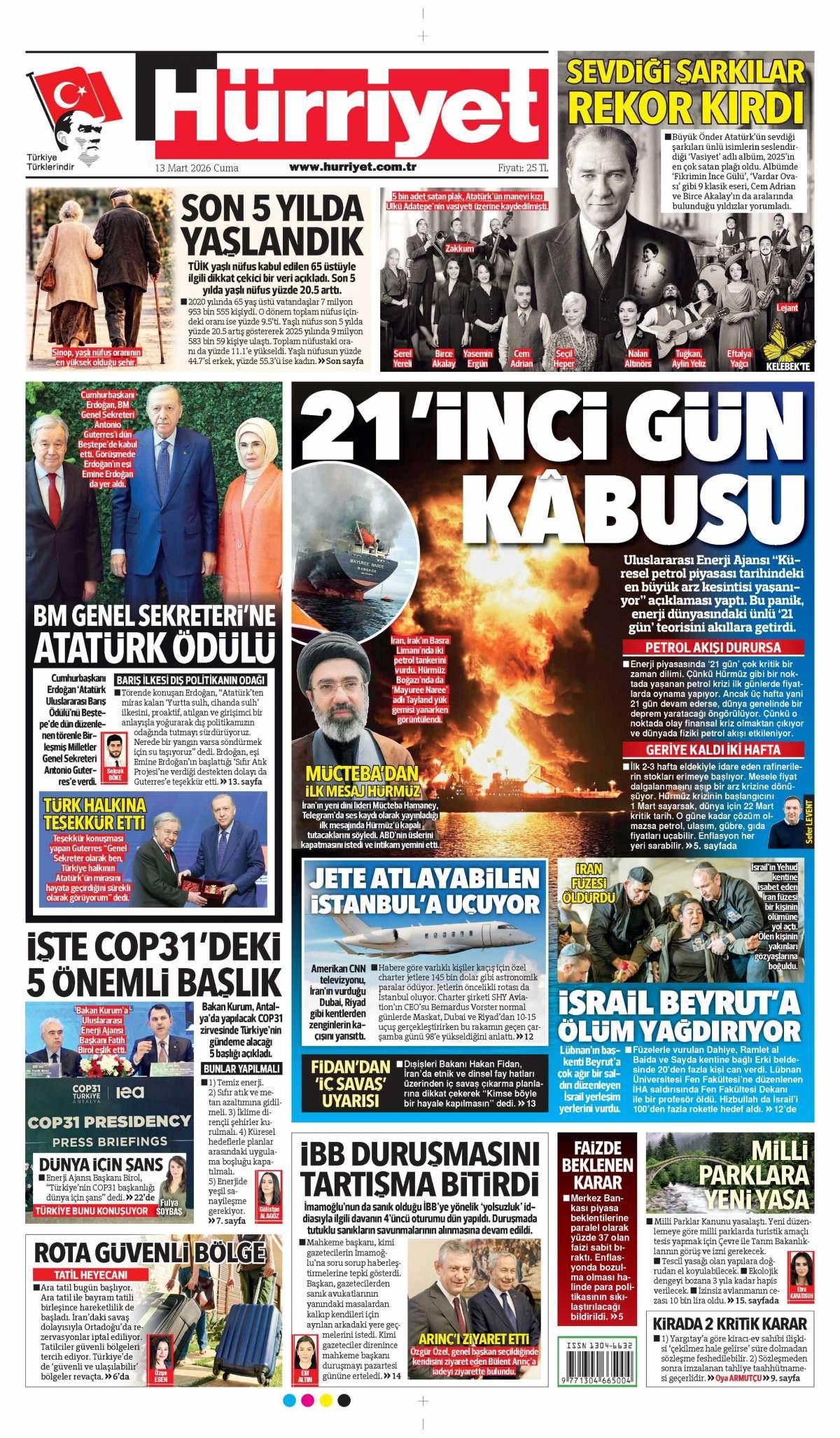 Hürriyet Gazetesi 13 Mart 2026 Günü Manşeti