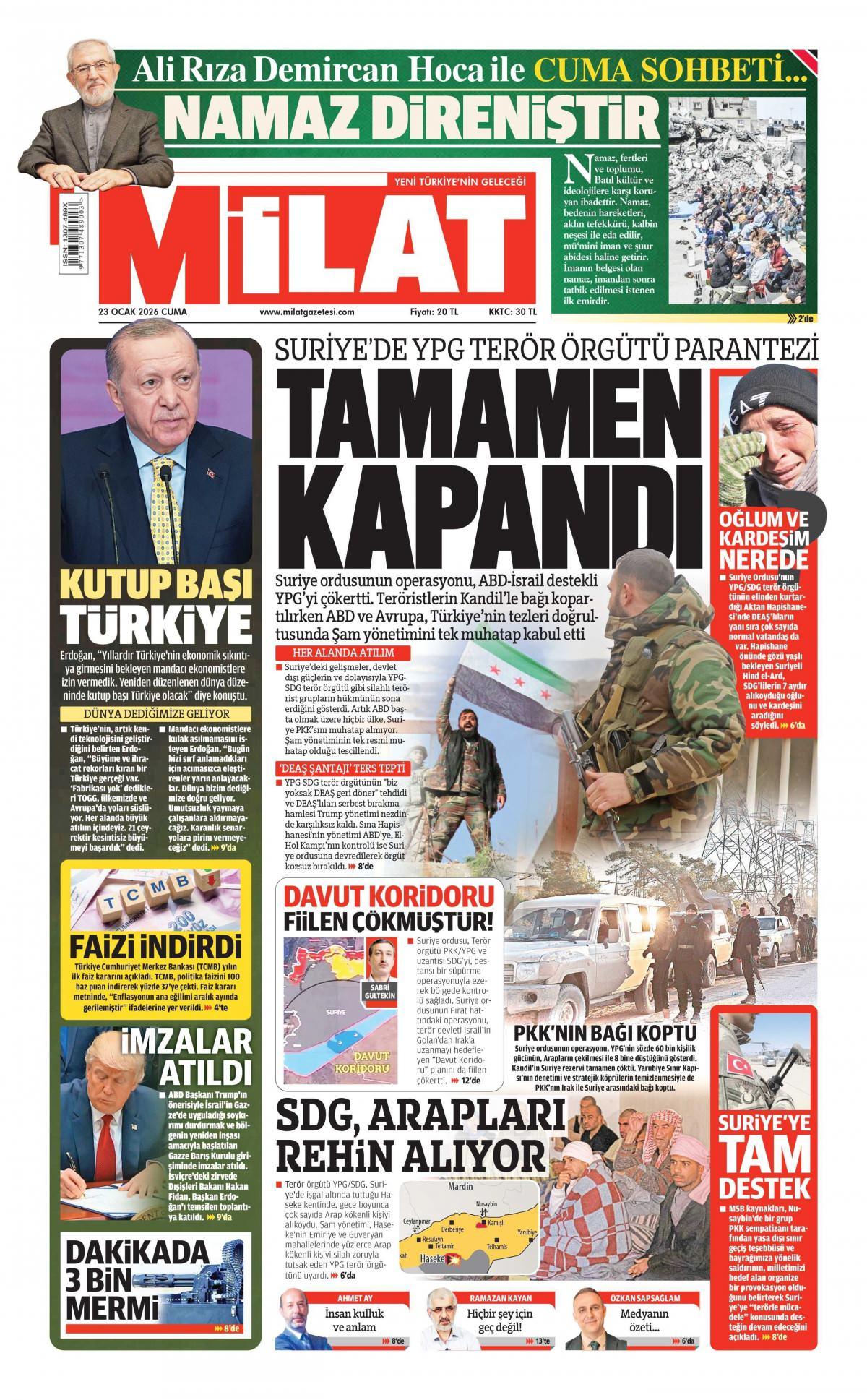 Milat Gazetesi 24 Ocak 2026 Günü Manşeti