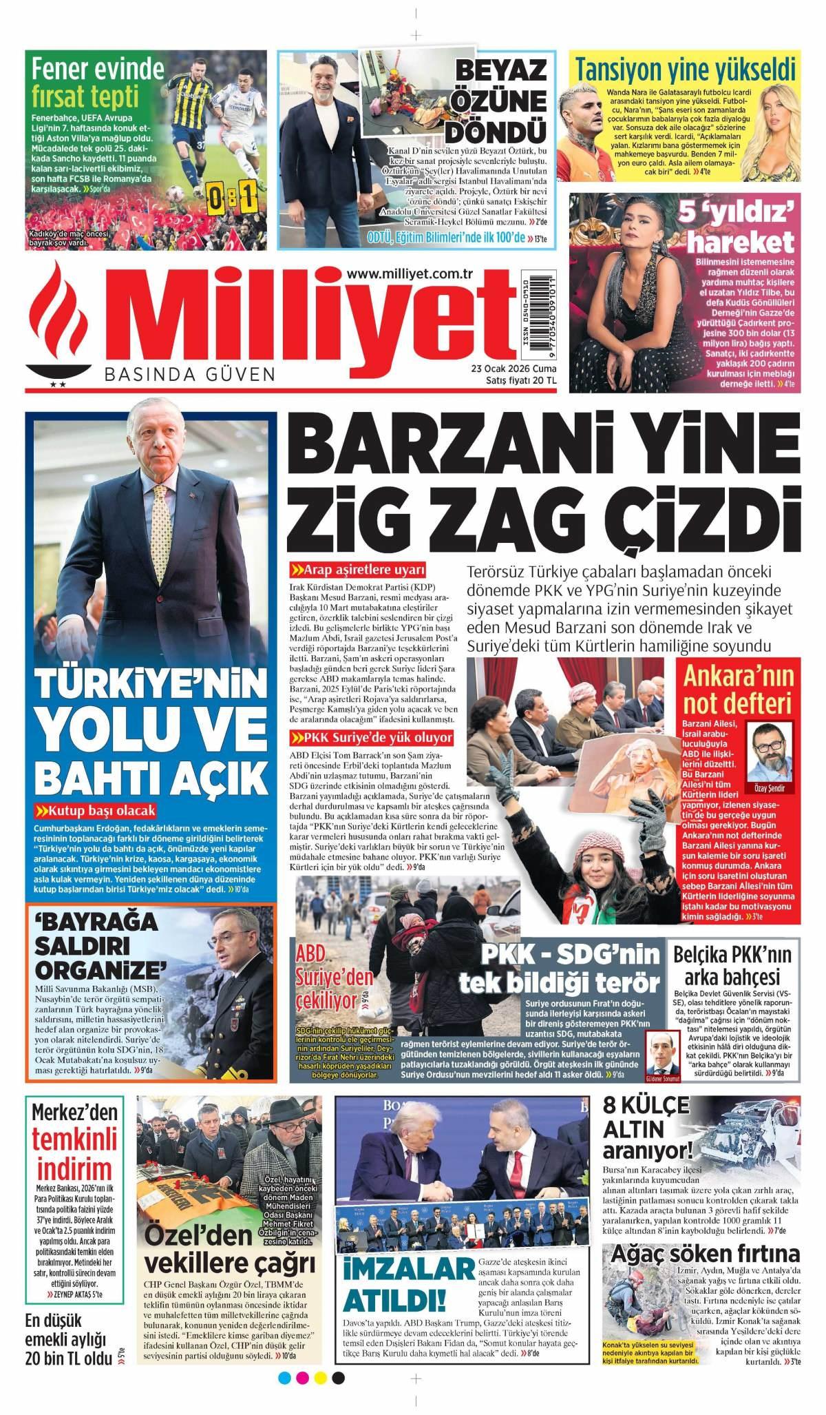 Milliyet Gazetesi 24 Ocak 2026 Günü Manşeti