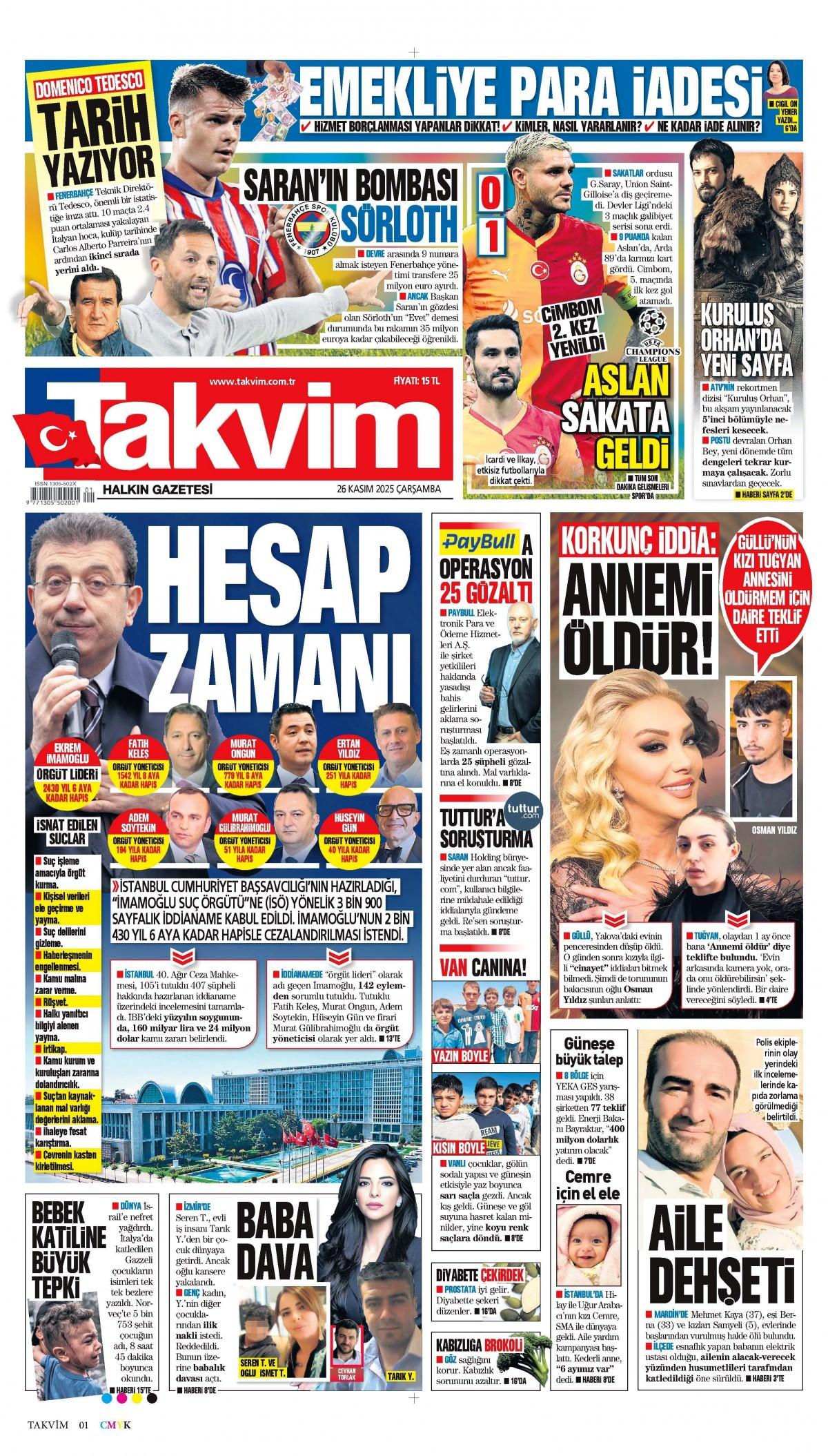 Takvim Gazetesi 27 Kasım 2025 Günü Manşeti