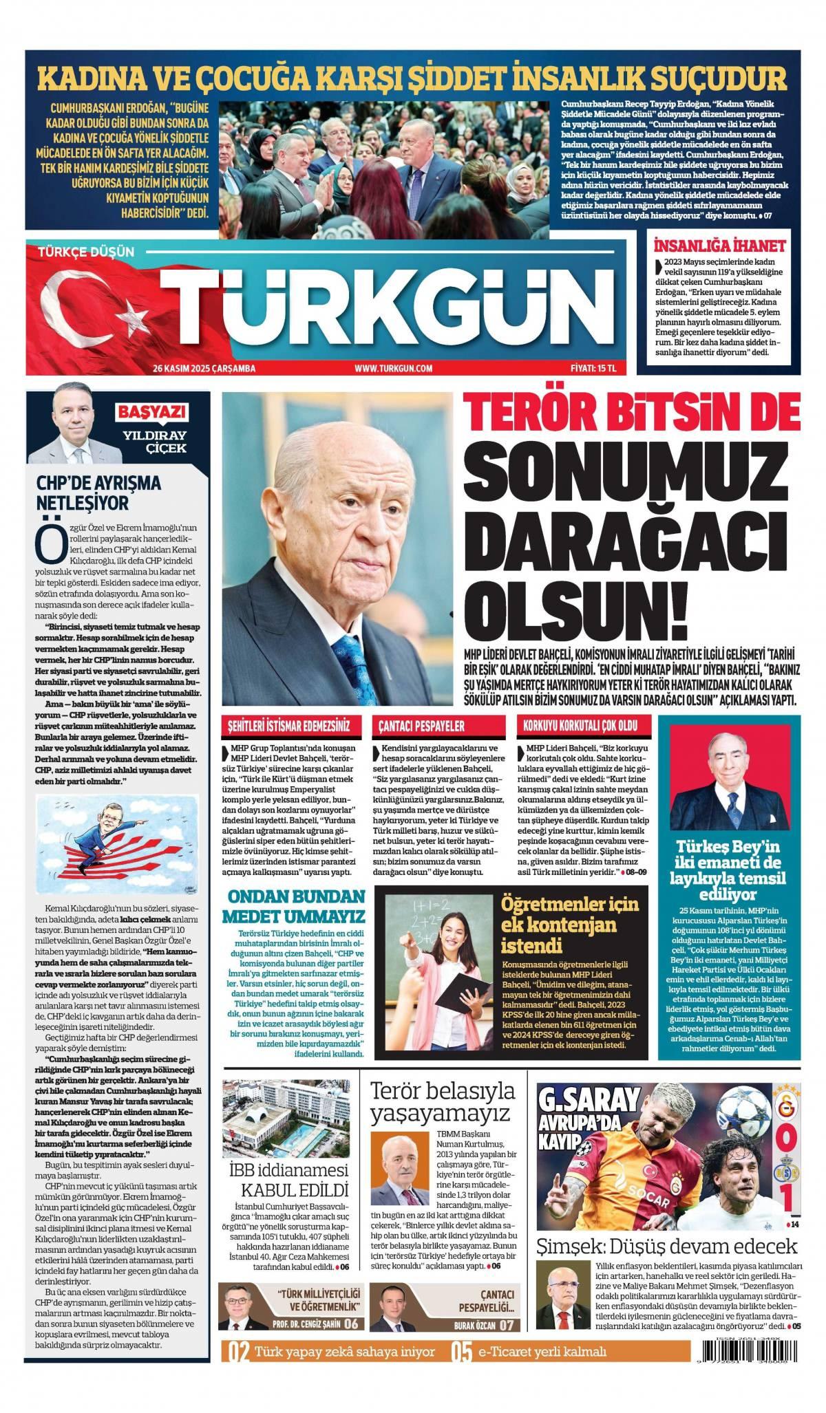 Türkgün Gazetesi 27 Kasım 2025 Günü Manşeti